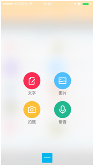 2、发帖:可以进入某话题区直接发帖;或者点击主页中间的“+”,选择发帖的形式,帖子可以文字、图片、也可附加语音。