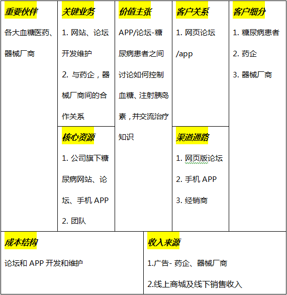 北京唐健科技由糖尿病患者论坛开始起步,多年经营稳定之后又沿着糖友的需求,进行一些相关产品的代理和销售,也为糖友谋得实惠,自己也获得部分收入。公司与不少零售商、代理商以及药企和器械厂商都有合作关系,之后又创建了糖友网和糖尿病网,构建了糖尿病线上论坛、网站、电子商务、线下实体销售互相引流的商业模式。