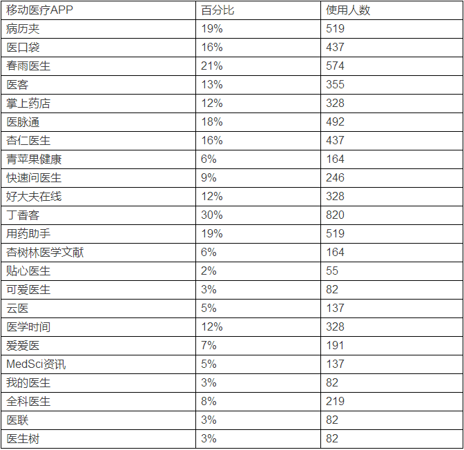 2733名医生用户使用移动医疗APP的市场调查数据分析