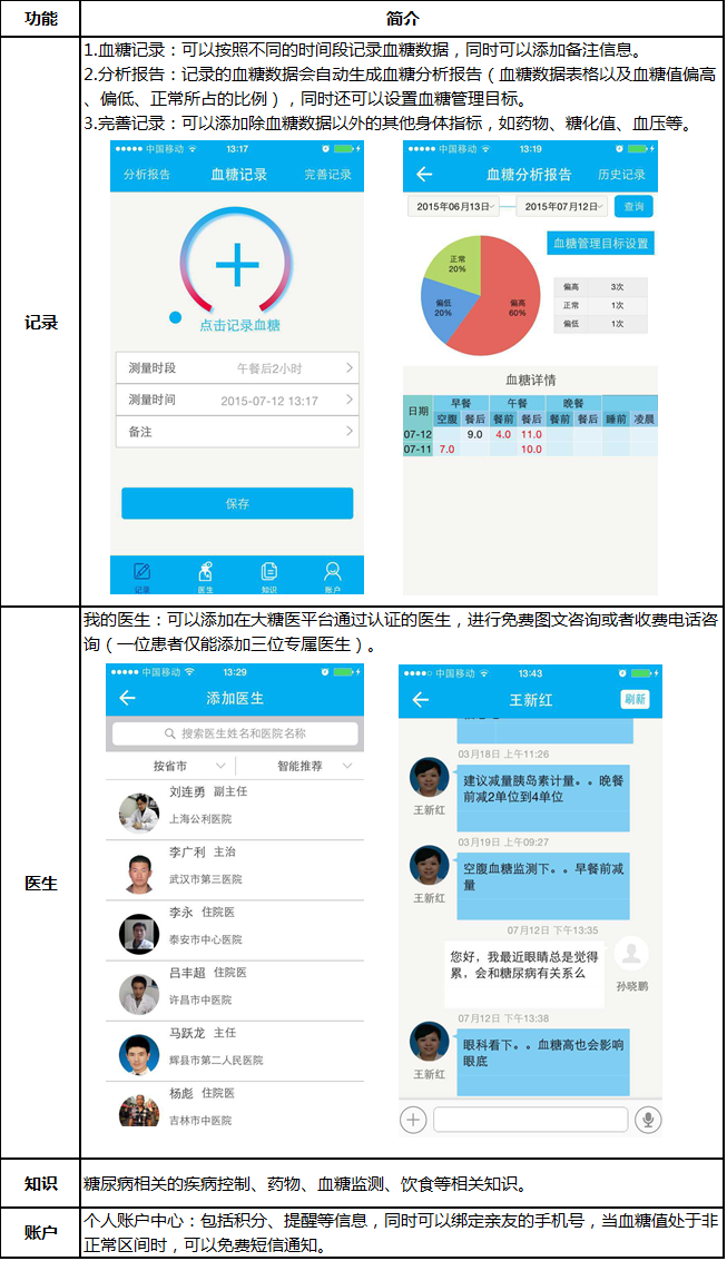 目前大糖医患者端的功能主要是血糖数据记录和医患咨询,后期显然会加入患者社区和医患社区功能。