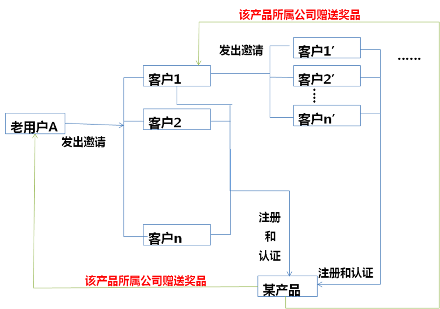 1、病毒营销有一些默认前提,首先主要针对的是大众领域,用户可以向所有人推荐产品,但是移动医疗专业人士端的产品是小众的,只适用于医护工作者和医学生。提供一些有价值的激励奖品是为了邀请更多的医护群体来注册使用,通过激励老用户A来邀请新用户1,新用户1注册认证后就变成了老用户,又再邀请新用户1’(见图一)……,如此类推,理论上推算出的数据很喜人,数字很漂亮,但是我们需要考虑到这个群体是比较局限的,他们周围认识的同行也就那么几个,真实的结果会很不乐观。