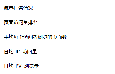 通常我们会比较网站的以下指标: