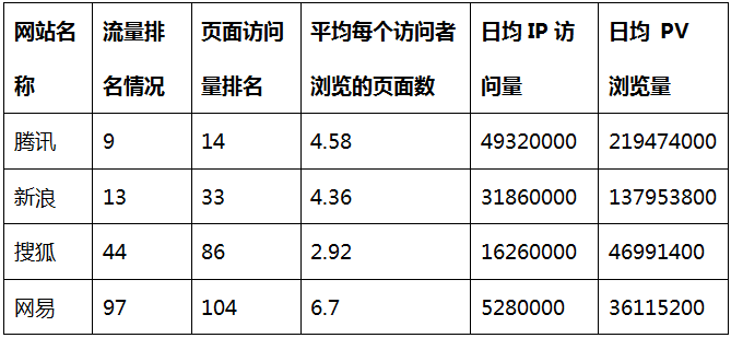 综合来看,我们国内 的新闻门户网站中,还是腾讯和新浪排名最高,但是网易虽然流量较低,但是平均每个访问者浏览的页面数确是最高的,这说明其可能在内容方面更能吸引他们的用户进行深入阅读。