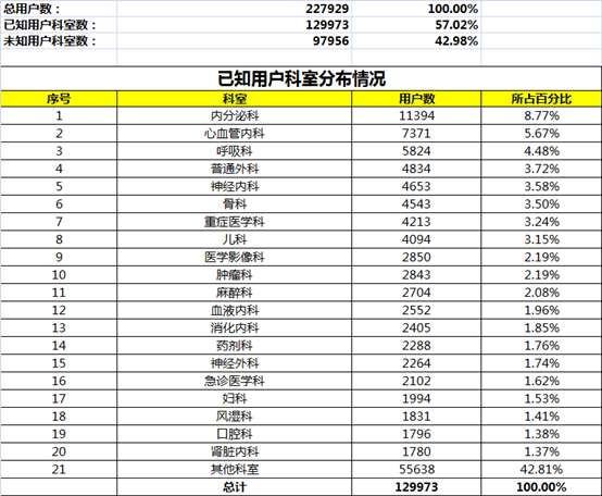 2015年9月10日的整体汇总数据可以看出,目前珍立拍的总用户数约为22.8万,已知地区和科室的认证用户数约为13万。
