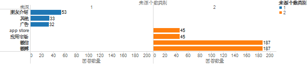 第一类别主要是线下推广,经过问询用户,他们认为的广告大多数指的是到科室里拿着宣传单页来推。第二类别主要是线上推广,那么两种提供不同来源个数的用户,他们各自考虑影响的优先是否有所区别。我们来看一下图三: