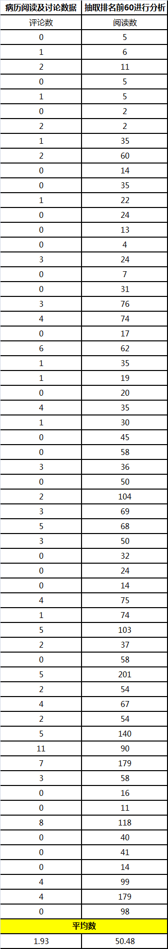 4,医学时间内的每篇文章平均分享为22次,还是相当不错的,不过病例分析,每个平均只有1.93个评论,阅读数只有50个,如果扣掉相关工作人员,管理员和版主点击的话…..流量下降趋势已成!