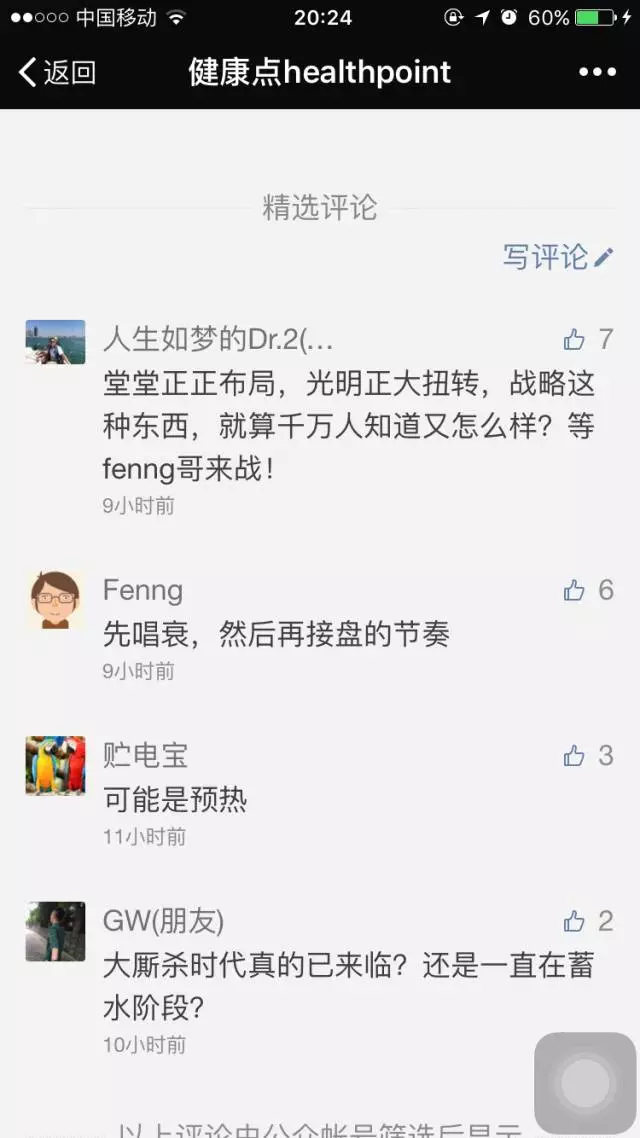 今日,医学界宣布获得道彤资本和张黎刚先生与爱康国宾合资公司的近 2000 万元的 A 轮投资。之前我曾说过医学界是移动医疗下半场中最大的还没有拿到融资的公司之一,其他还有谁,你懂的……我们都是丁香园的对手之一,来日相战于江湖,我们和医生站也会互为竞争对手,未来我们可以有深入的内容合作,也会有渠道和用户的竞争。