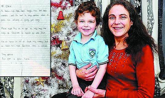 英国北拉纳克郡的单亲妈妈克莱尔·罗克近日收到了一份温馨的礼物——一位陌生人留下的100英镑(约合人民币969元)以及一封信——寄礼物的陌生人希望能够以此帮助克莱尔为儿子约翰准备一份圣诞礼物。