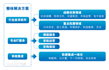 系统集成:指根据客户的需求和投入资金的规模,应用各种计算机网络相关技术,选择各种软硬件设备,经过集成设计,安装调试等大量技术性工作使系统能够满足用户的实际工作要求。主要包括软硬件集成、网络布线等等。