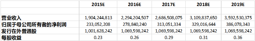 根据以上的假设,我们大致可以推算出2015-2019年的营业收入。 如下图所示: