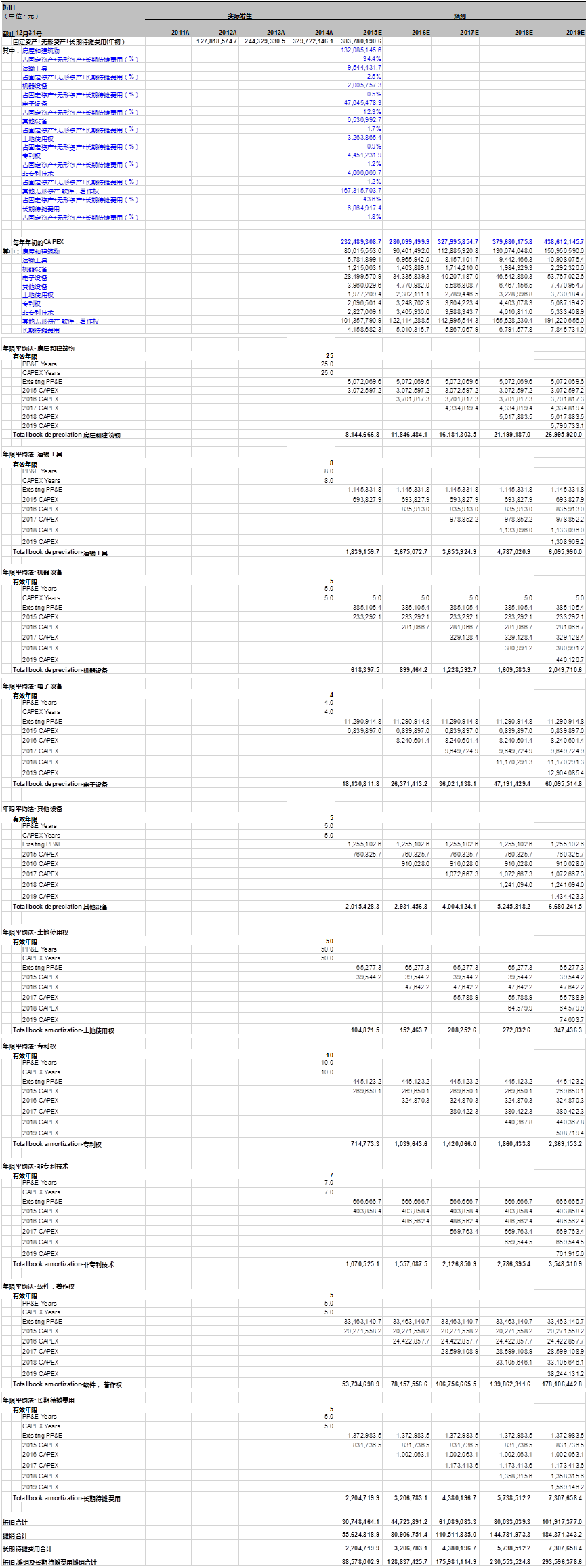从万达信息的还款情况来看,我们认为2014年年末已经将到期的长期借款偿清,为到期的,转移到一年内到期的长期借款。所以,2014年年末的长期借款余额为0。鉴于,万达信息未来的发展计划,我们相信万达信息会在贷款到期的时候继续再融资。我们从万达信息2015年上半年的年报了解到,万达信息长期借款上半年的余额为120,000,000元。也就是说,万达信息在2014年底偿还了所有的长期贷款,并在2015年初重新发债。那么,为什么万达信息要先偿还贷款, 然后再借款呢? 我们估计, 万达信息更换了贷款的金融机构(之前是汇丰银行上海分行)。关于2015年长期借款的利率,目前一至三年中长期贷款利率大约为4.75%。这样,我们就假设从2015年到2019年,长期借款的利率为4.75%。
