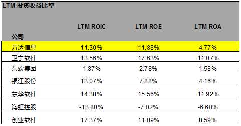 可比公司的投资收益比率的计算,如下图表所示: