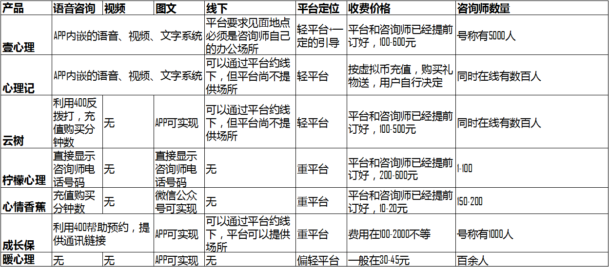 图 心理类APP产品对比