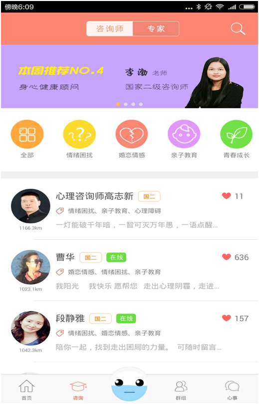 咨询分页包括咨询师和专家两类。