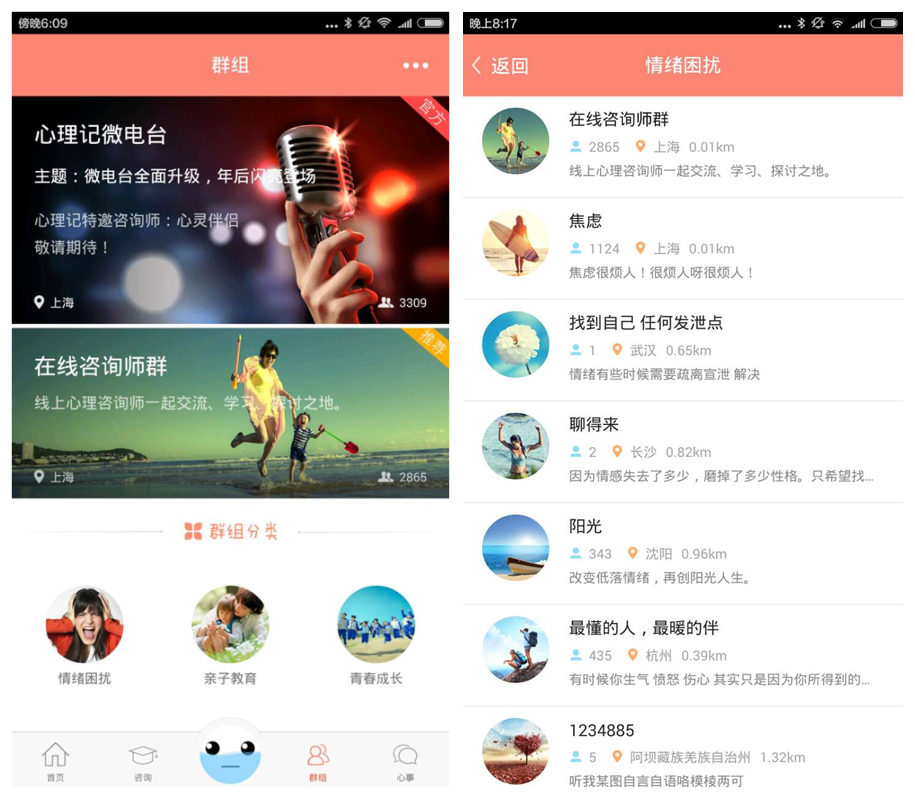 心理记采用LBS的方式,对咨询师进行