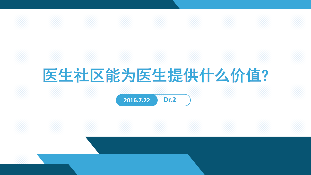 以下是Dr.2在“互联网医疗的真相与未来—杭州站”的演讲PPT,欢迎大家多批评指正,与作者交流。 医库用户行为视频展示:http://v.qq.com/x/page/x0315v89ft5.html