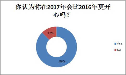 对于2017年是否会比2016年更开心,88%的医务工作者对此抱有很大的信心,相信自己明年会比今年更好,可以看出大家对未来都充满着希望。