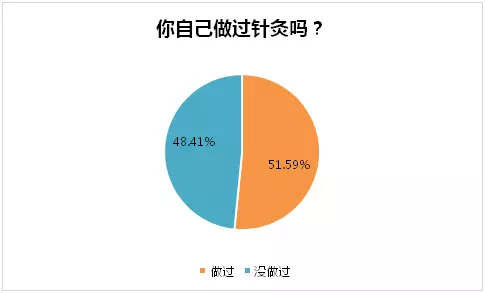在参与调研的用户中,有48.41%的医务工作者没有做过针灸,而51.59%的医务工作者则做过,两者基本持平。