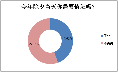 有44.61%的医务工作者除夕当天需要值班,而55.39%的医务工作者则不需要。