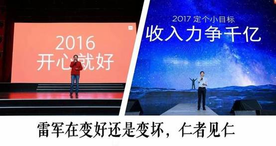 因此我认为BAT特别是百度裁撤移动医疗事业部的原因是内部非常严苛的绩效考核和短期行为,与产业发展规律相悖以及梦之队般的优秀人才内耗所导致。其实对大企业来说绩效管理始终是一个两难的问题,通常只以成败论英雄。2016 年的小米年会上雷军提出,“所以我们定下了 2016 年最重要的战略:开心就好。我们决定继续坚持‘去 KPI’的战略,放下包袱、解掉绳索,开开心心地做事。” 在 2017 年的年会上,过得并不太开心的雷军画风大变,他说,“天上不会掉馅饼,撸起袖子加油干。” 雷军为小米定了一个小目标 “小米整体收入破千亿元。” 千亿就是 KPI,KPI 就是绩效。