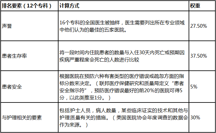 US News全国最佳医院专科排名每年更新一次,一共16个专科被收录,其中12个专科的排名主要由数据确定,另外4个专业排名则完全基于声誉与医生专家的调研。