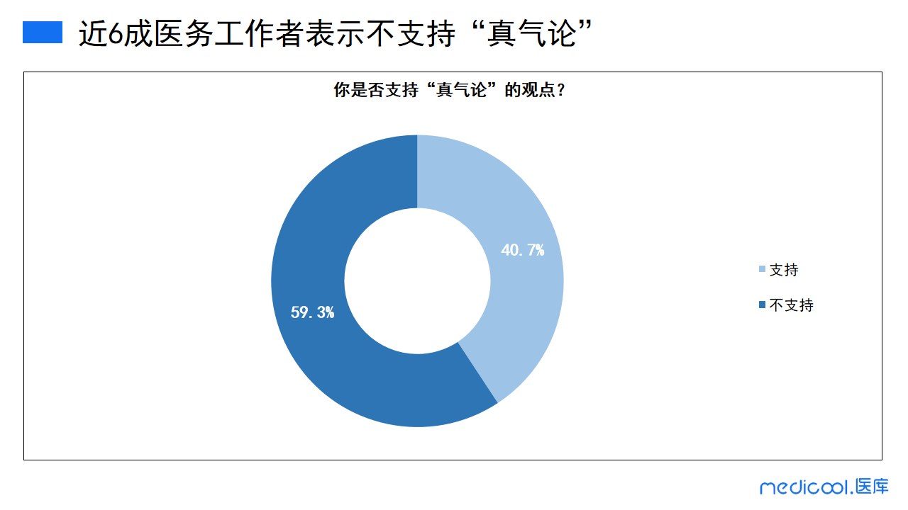 近六成的医务工作者表示不支持“真气论”,剩下的40.7%的医务工作者支持朱清时院士的观点。