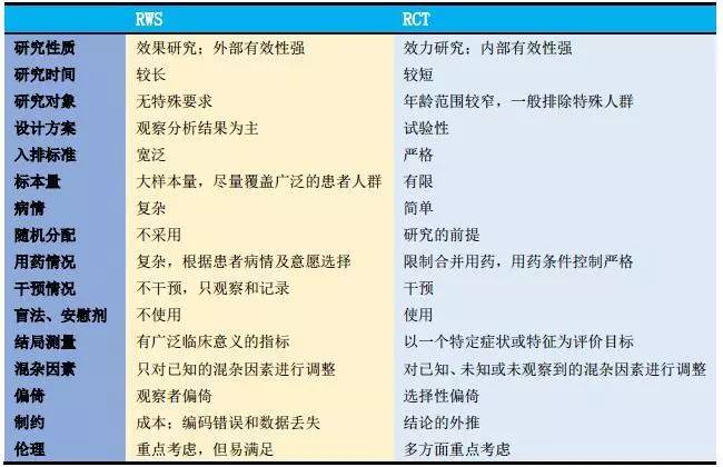 临床随机对照试验(RCT)关注的是效力研究,需要严格控制试验条件,通过一系列入选排除标准选取一定样本的特定人群,研究时间通常较短,样本量相对小,无法确定在真实临床实践中的可推广性,另外出于控制变量的设计,RCT很少获得关于伴随疾病和伴随治疗的信息,并且为了依从研究方案往往采取较多的干预措施,这在临床实践中不太现实或者实施难度相当大。