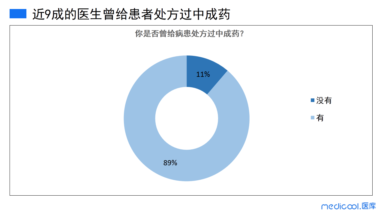 调研显示,在临床工作中,89%的医生曾给患者处方过中成药,未处方过的中成药的医生比例仅占11%。