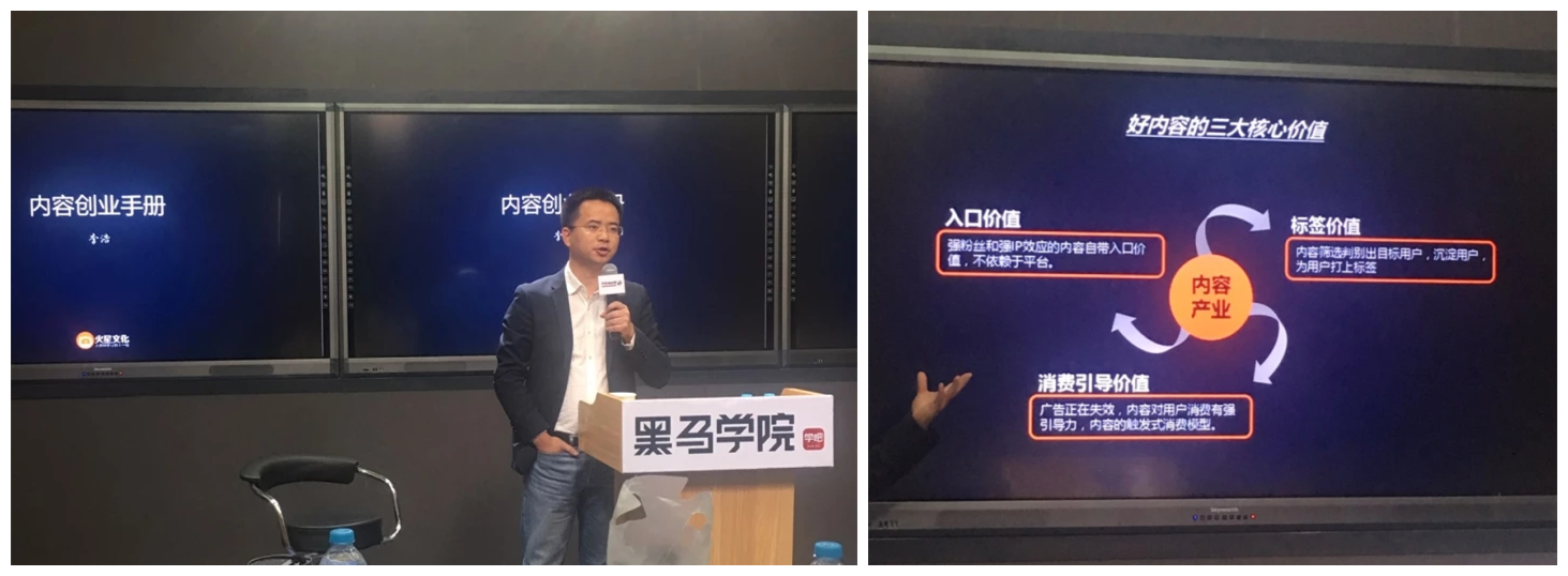 今天,火星文化的李浩老师给我们做了一次关于内容创业的课程,非常系统而全面,作为小白的我第一次完整的学习了从内容创作、宣传、渠道、IP、变现等等,非常翔实。