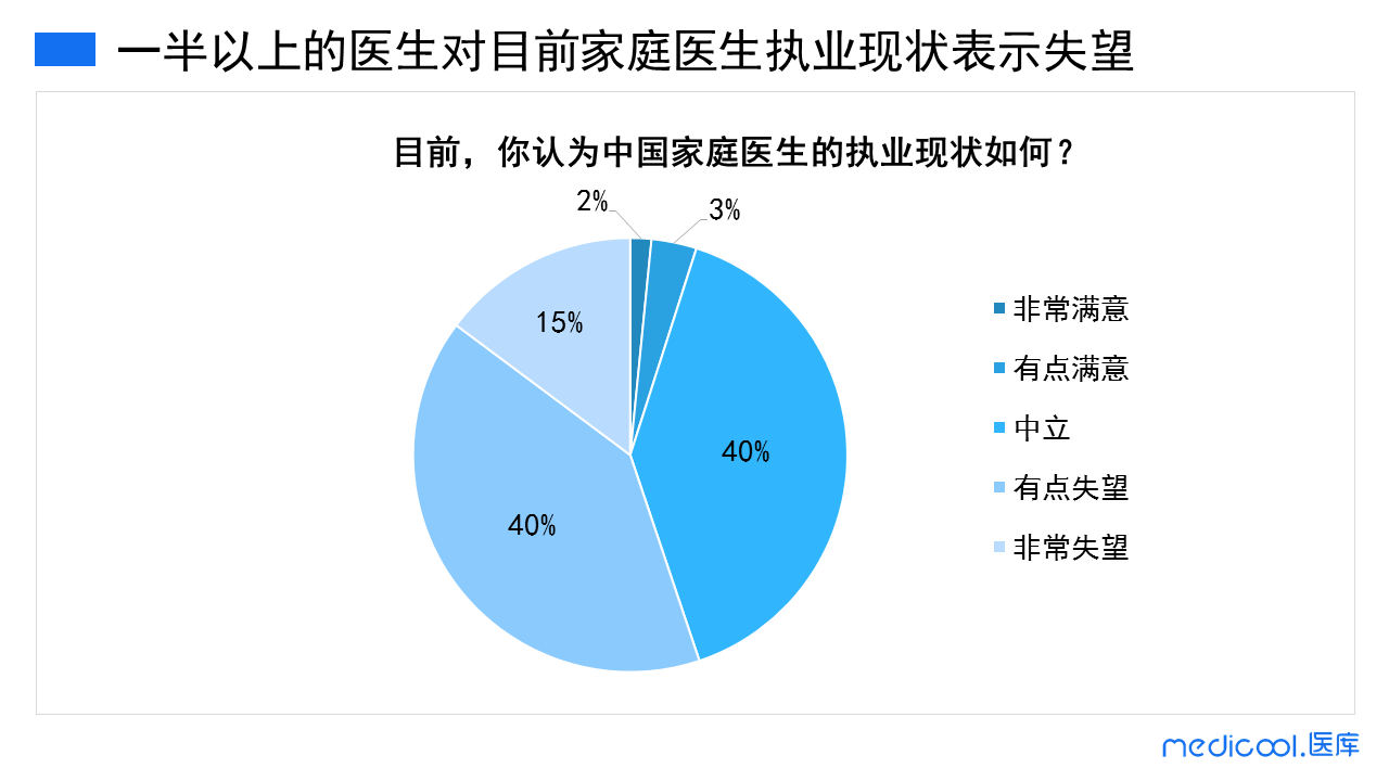 调研数据显示,对于现在家庭医生的执业现状,表示满意的医生只有微乎其微的比例,然而认为失望的医生竟占了一半以上,可以看出家庭医生在国内的发展并不乐观。