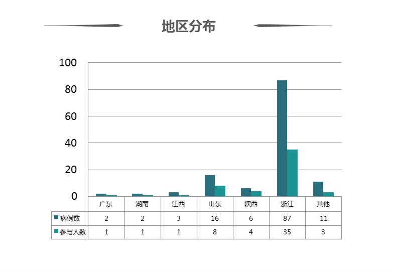 以下图各大区市场分布图为例,相对说明浙江省的销售代表积极与医生沟通,建立了良好的学术关系。