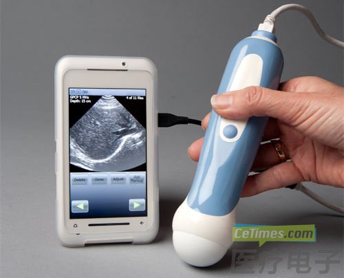 上图所示的产品是世界首个智能手机超声成像系统Mobisante,名为MobiUS SP1超声系统。这款产品已经通过了FDA认证,旨在降低医疗成本,改善不具备成像中心地区的诊断条件。