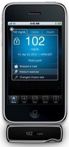 IBGStar是一款连接到iPhone的血糖仪。iPhone上还有款IBGStar糖尿病管理应用程序,可以跟踪血糖、碳水化合物的摄取和胰岛素用量。
